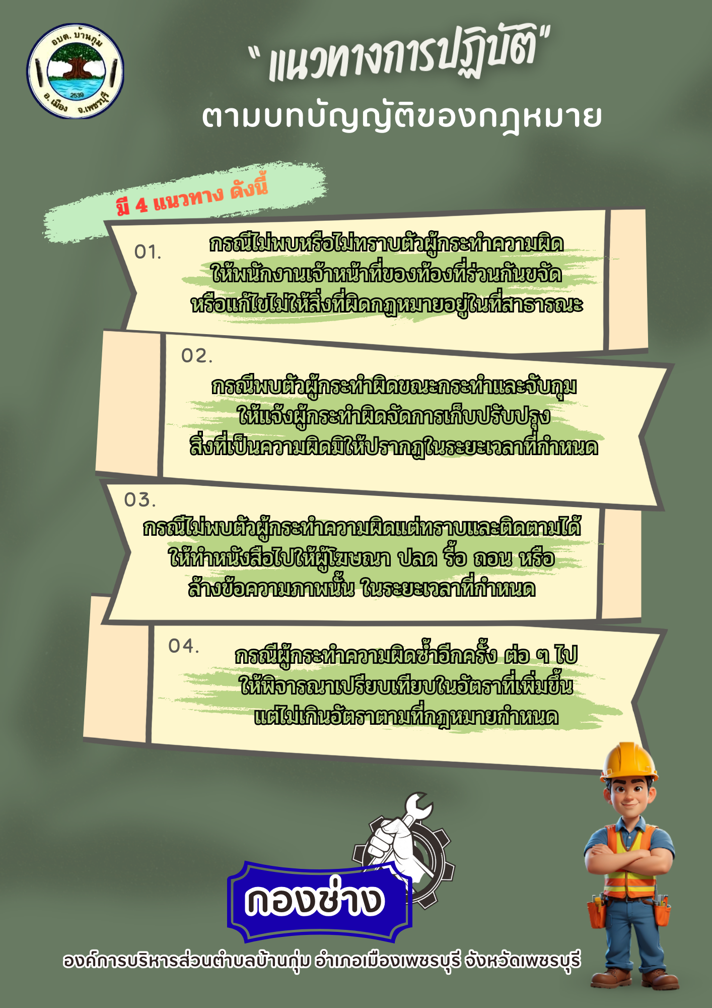 ลิขสิทธิ์ © 2559 - 2567 องค์การบริหารส่วนตำบลบ้านกุ่ม จังหวัดเพชรบุรี สงวนไว้ซึ่งสิทธิทั้งหมด.